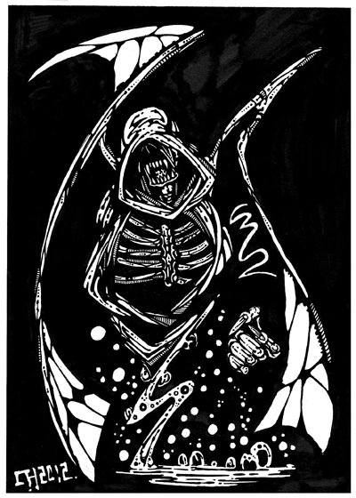 Illustration for Phil Holmes article about the Undead in Runequest. White Dwarf 55